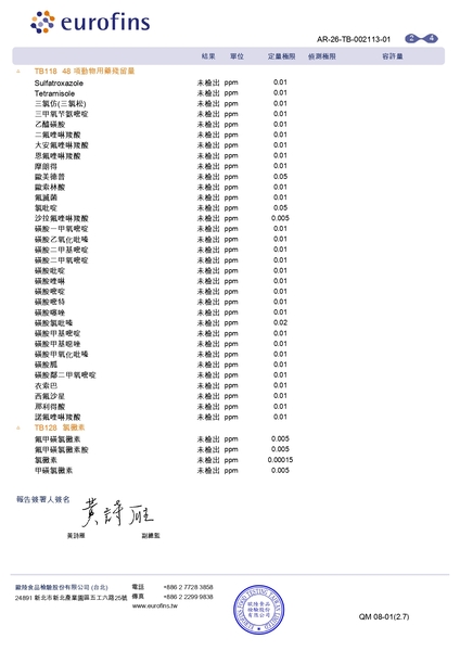 11501-歐陸-黃金鴕鳥-動物用藥48項+氯黴素類 (4項)